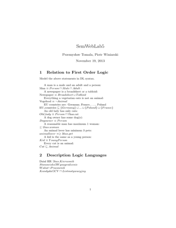 vegetarian≡ animal u ∀eats.¬animal u ∀eats.¬∃partOf.animal