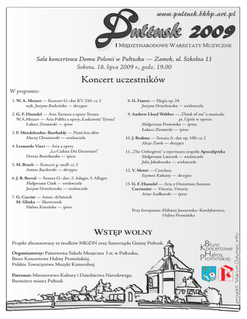 wstęp wolny - Biuro Koncertowe Haliny Promińskiej