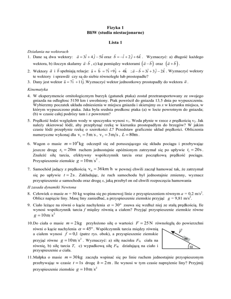 Fizyka 1 BliW (studia niestacjonarne) Lista 1 v 3m s = m80 = L kg10