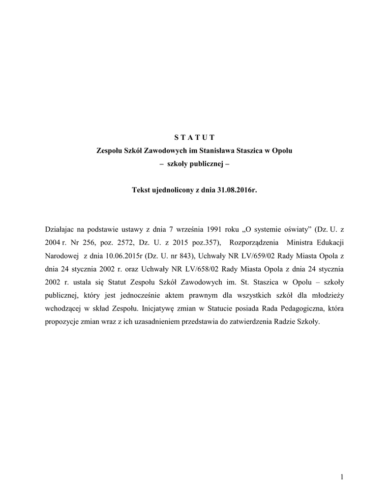 S T A T U T - Zespół Szkół Zawodowych im. Stanisława Staszica w