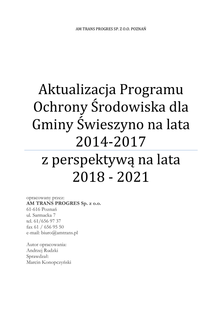 Aktualizacja Programu Ochrony Środowiska dla Gminy Świeszyno
