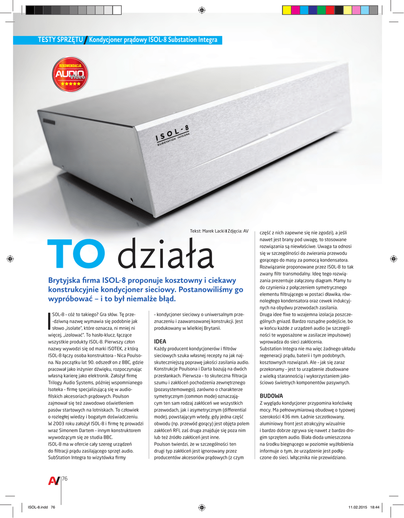 Isol-8 SubStation Integra w teście Audio Video 1,2 Mb