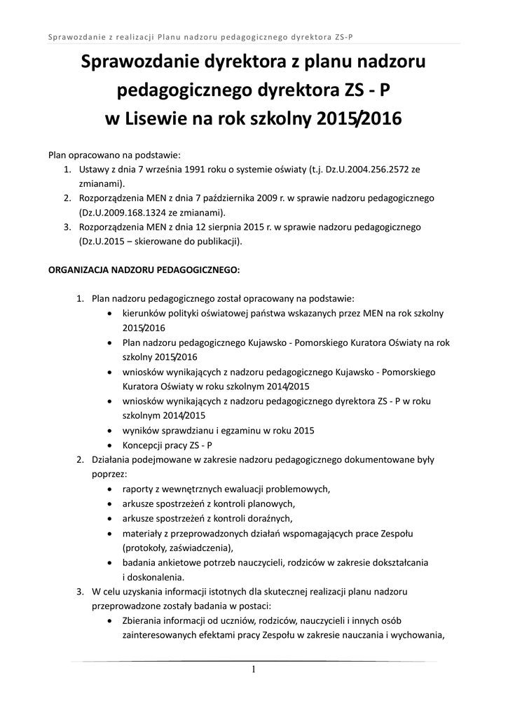 Sprawozdanie z realizacji nadzoru pedagogicznego 2015/2016.
