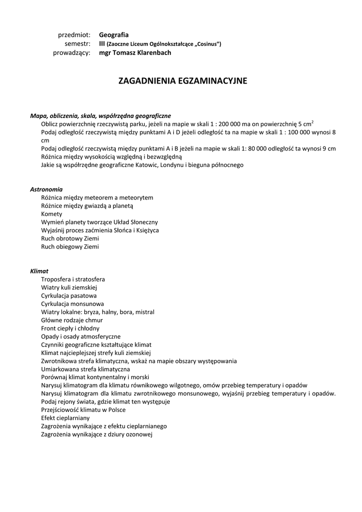 zagadnienia egzaminacyjne - GEOGRAFIA