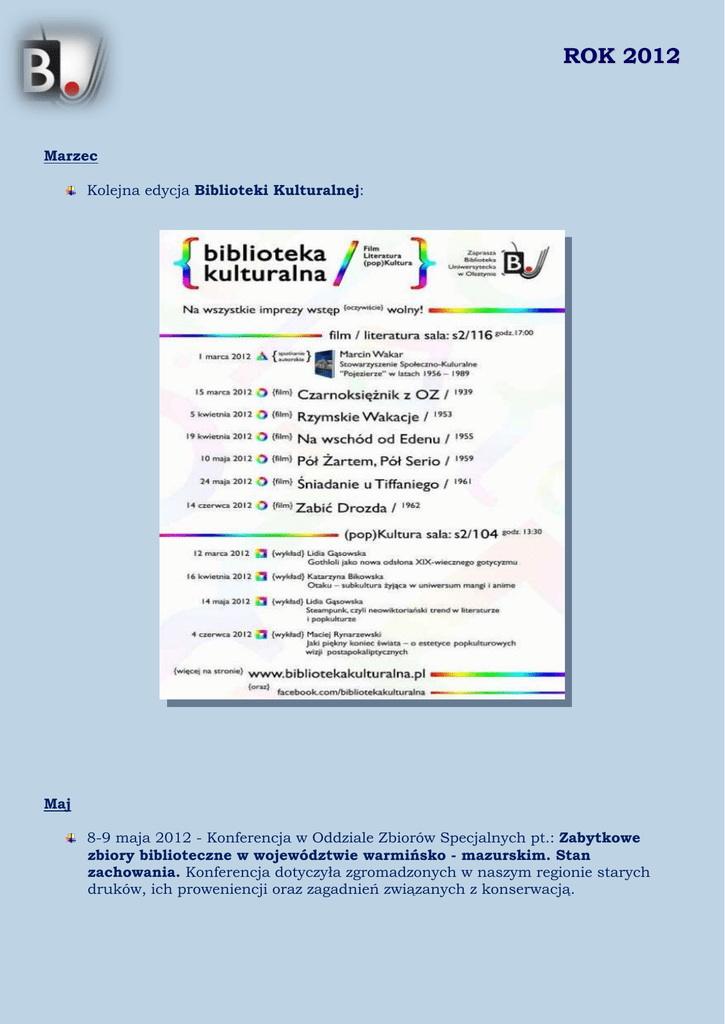 ROK 2012 - Biblioteka Uniwersytecka