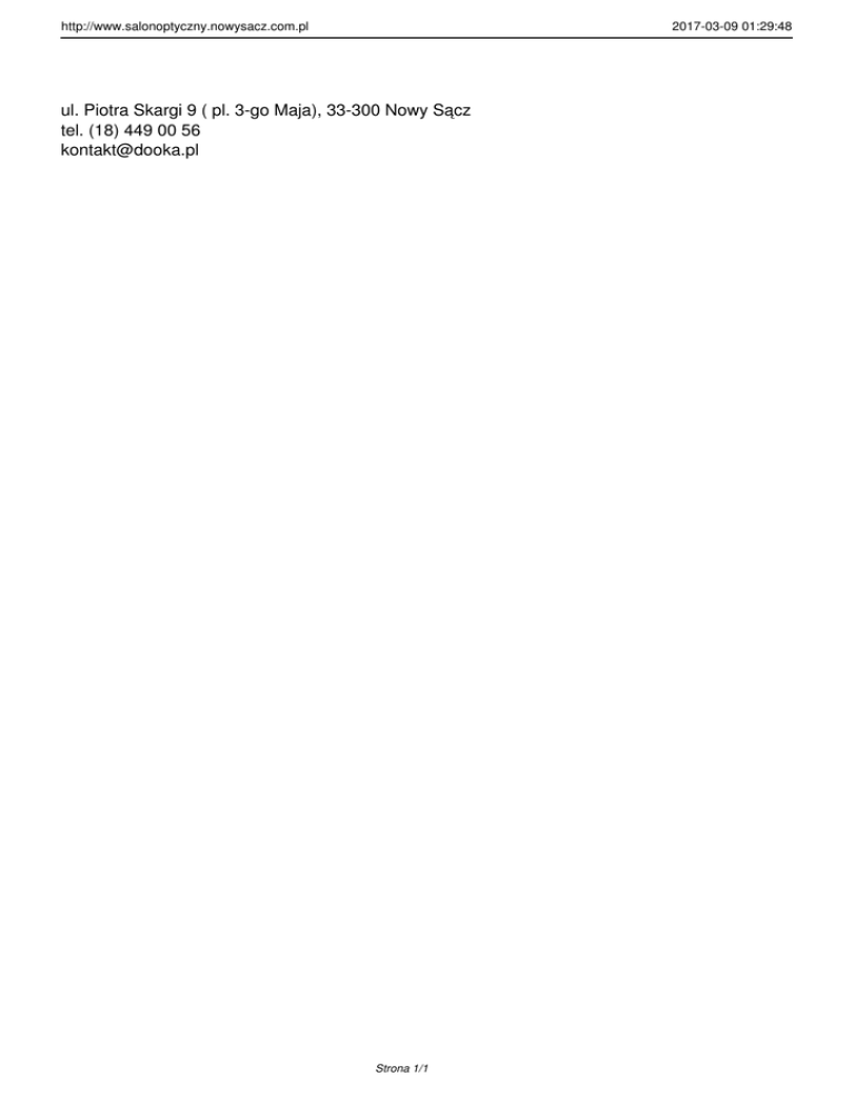 http://www.salonoptyczny.nowysacz.com.pl 2017-03-09 01:29:48 ul. Piotra Skargi 9 ( pl. 3-go Maja), 33-300 Nowy Sącz tel. (18) 449 00 56 [email protected] Strona 1/1