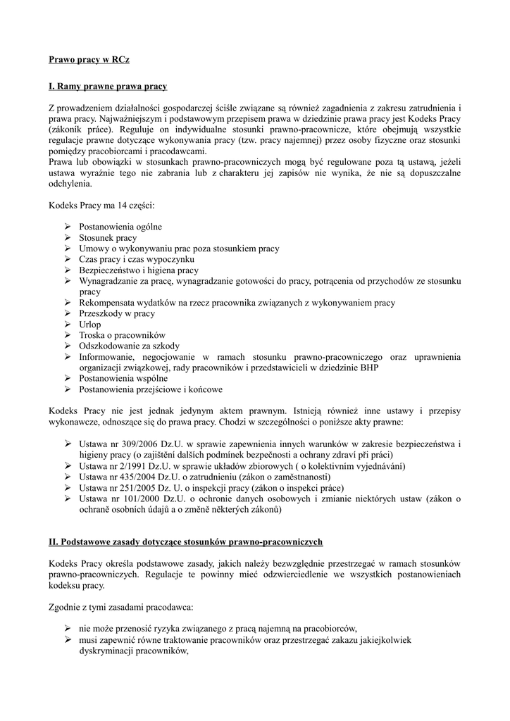 Prawo pracy w RCz I. Ramy prawne prawa pracy Z prowadzeniem