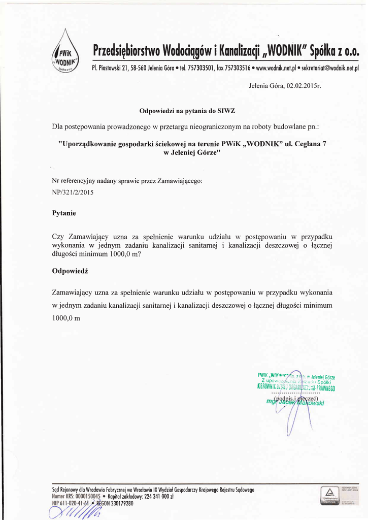 Przedsiębiorslwo Wododqgów i l(onolizutii,,W()Dll!l(' Spólko z o.0.