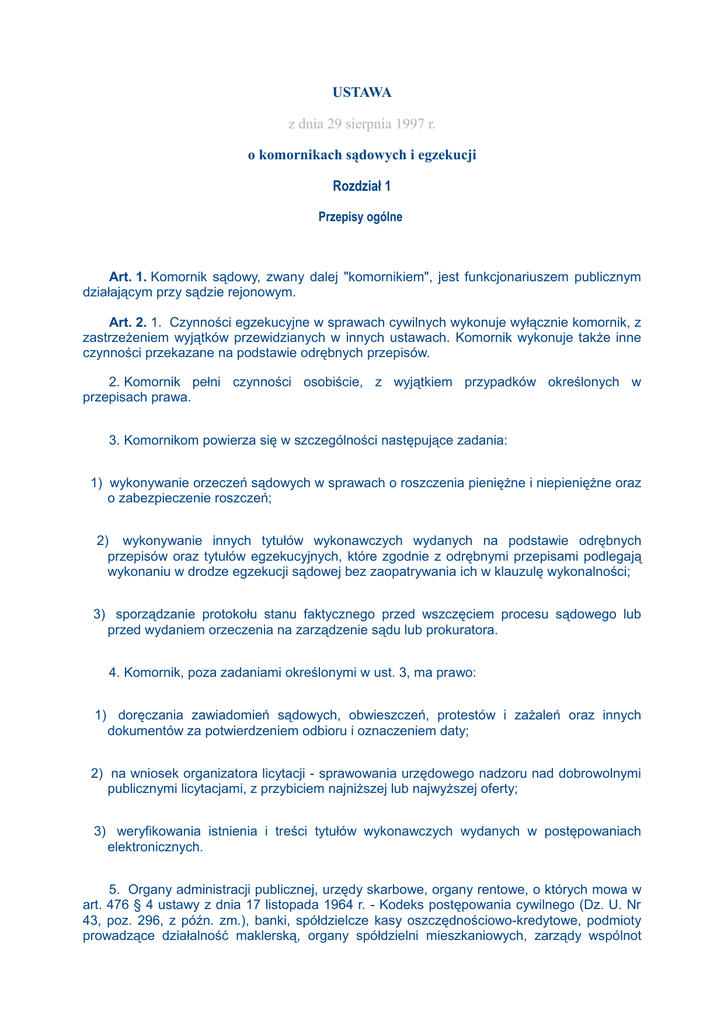 USTAWA z dnia 29 sierpnia 1997 r. o komornikach sądowych i