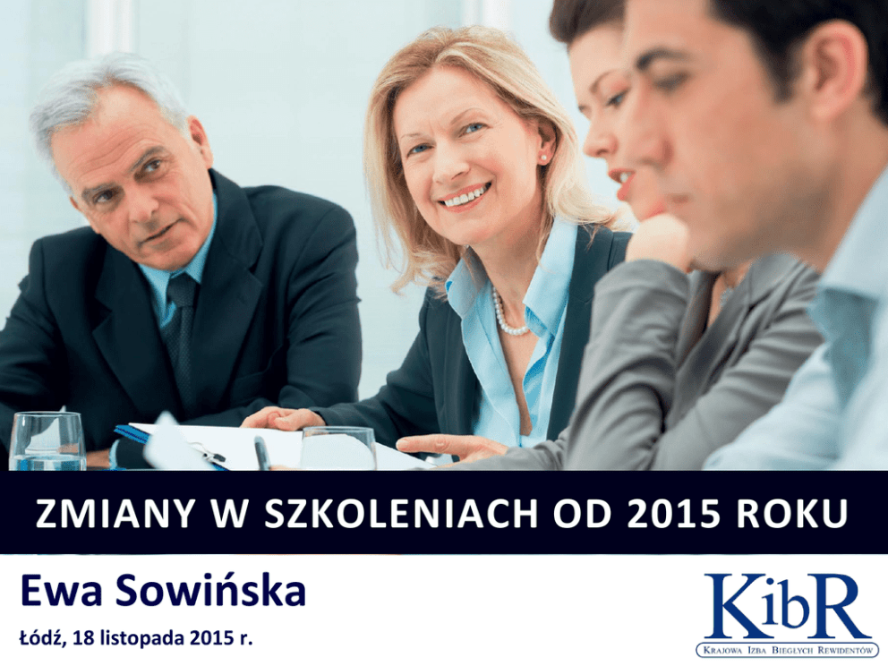 ZMIANY W SZKOLENIACH OD 2015 ROKU Ewa Sowińska Łódź, 18 listopada 2015 r. Przez pierwszy okres rozliczeniowy rozumie się daty graniczne od 1 stycznia 2015 r. do 31 grudnia 2017 r. Biegły rewident w okresie trzech lat powinien odbyć szkolenie zarówno z rewizji finansowej, jak i z rachunkowości. Każdy biegły rewident musi odbyć w okresie kolejnych trzech lat 120 godzin lekcyjnych obligatoryjnego doskonalenia zawodowego. Każdego roku bezwzględnie powinien odbyć 24 godziny szkoleń – jest to minimalna wymagana rocznie liczba godzin szkoleniowych. Pozostałą wymaganą liczbę godzin (uzupełniającą do 120 godzin) może zaliczyć w dowolnym czasie, ale koniecznie w 3-letnim okresie rozliczeniowym. ZMIANY W SZKOLENIACH OD 2015 ROKU TRZYLETNI OKRES ROZLICZENIOWY W 3-letnim okres rozliczeniowym 120 godzin lekcyjnych można odbyć w podziale: • co najmniej 72 godziny szkolenia przeprowadzonego przez KRBR lub jednostkę uprawnioną, • najwyżej 48 godzin samokształcenia. W każdym roku kalendarzowym okresu rozliczeniowego istnieje bezwzględna konieczność odbycia 24 godzin lekcyjnych z tego: • co najmniej 16 godzin szkolenia przeprowadzonego przez KRBR lub jednostkę uprawnioną, • najwyżej 8 godzin samokształcenia. ZMIANY W SZKOLENIACH OD 2015 ROKU TRZYLETNI OKRES ROZLICZENIOWY Biegły rewident jest zobowiązany do posiadania dokumentów potwierdzających odbyte szkolenia przez okres sześciu lat od ich zakończenia (także zaświadczenia dotyczące samokształcenia). Na wezwanie Krajowej Rady Biegłych Rewidentów biegły rewident jest zobowiązany okazać dokumentację w terminie 30 dni od dnia otrzymania wezwania. Nie ma potrzeby przesyłania do Biura KIBR zaświadczeń o odbytych szkoleniach bez konkretnego wezwania KRBR. ZMIANY W SZKOLENIACH OD 2015 ROKU DOKUMENTACJA SZKOLEŃ Samokształcenie - to działanie edukacyjne, które w ocenie biegłego rewidenta przyczynia się do rozwoju jego umiejętności zawodowych. Odbywa się poprzez udział w konferencjach, w studiach podyplomowych, dodatkowych kursach, warsztatach, szkoleniach, ale jest to także praca dydaktyczno-naukowa czy prowadzenie wykładów. Przepisy umożliwiają zaliczenie części obowiązkowych szkoleń w formie samokształcenia pod warunkiem, że biegły rewident prześle „Oświadczenie o samokształceniu”. W przypadku, gdy samokształcenie ma zaliczyć część rocznej minimalnej liczby godzin obligatoryjnego doskonalenia zawodowego (co stanowi najwyżej 8 godzin samokształcenia w ramach wymaganych w skali roku 24 godzin lekcyjnych), to biegły rewident powinien złożyć oświadczenie do końca roku, w którym chce zaliczyć to szkolenie. W odniesieniu do 2015 roku jest to graniczna data 31 grudnia 2015 r. ZMIANY W SZKOLENIACH OD 2015 ROKU SAMOKSZTAŁCENIE Od 2015 roku liczba godzin obligatoryjnego doskonalenia zawodowego dla biegłych rewidentów wykonujących i niewykonujących zawodu w 3-letnim okresie rozliczeniowym została zrównana i wynosi 120 godzin lekcyjnych. W proporcjonalnym podziale na każdy rok przypada więc 40 godzin obligatoryjnego doskonalenia zawodowego, które biegły rewident może odbyć w podziale: • co najmniej 24 godzin szkolenia przeprowadzonego przez KRBR lub jednostkę uprawnioną, • oraz najwyżej 16 godzin samokształcenia. ZMIANY W SZKOLENIACH OD 2015 ROKU ZRÓWNANIE WYMAGAŃ SZKOLENIOWYCH Podjęta współpraca: • KKN; • Komisja ds. standaryzacji usług świadczonych przez biegłych rewidentów; • Komisja do opiniowania aktów prawnych. Planowane spotkania i podjęcie współpracy: • Regionalne Oddziały KIBR; • Komisje: ds. etyki, ds. spornych, ds. współpracy międzynarodowej; • KRD; • KSD. SPOTKANIA/KONTAKTY – zewnętrzne • ACCA; • Polski Instytut Dyrektorów – PiD; • Konfederacja Lewiatan; • Polski Instytut Kontroli Wewnętrznej ; • Szkoła Wyższa Psychologii Społecznej – SWPS; • Fundacja Forum Mentorów; • Ministerstwo Gospodarki; • CSRinfo – odpowiedzialność społeczna. ZMIANY W SZKOLENIACH OD 2015 ROKU DZIAŁANIA KOMISJI ds. SZKOLEŃ KRBR Zakres tematyczny obligatoryjnego doskonalenia zawodowego dla biegłych rewidentów w 2016 r. Moduł I – Podatek dochodowy w księgach rachunkowych i sprawozdaniu finansowym – aktualny stan prawny E. Walińska, A. Wencel, A. Jurewicz, M. Wiatr „Podatek dochodowy w systemie rachunkowości – zasady ustalania i rewizji” (SKwP 2014/2015) Moduł II – Partnerstwo publiczno-prywatne – aspekty podatkowobilansowe B. Gajos „Partnerstwo publiczno-prywatne, Aspekty podatkowo-bilansowe” (SKwP 2014/2015) Moduł III – Przychody – rachunkowość i rewizja finansowa A. Sajewicz „Przychody – rachunkowość i rewizja finansowa” (KIBR 2014) Moduł IV – Badanie sprawozdań finansowych organizacji pozarządowych Elżbieta Pudło, Ewa Sobińska, Justyna Zakrzewska (2015) ZMIANY W SZKOLENIACH OD 2015 ROKU TEMATYKA SZKOLEŃ w 2016 r. Moduł V – Dokumentowanie procesu badania w sposób zgodny z wymogami MSRF Praca pod red. A. Helina (KIBR 2014) Moduł VI – Specyfika rachunkowości i rewizji finansowej Spółdzielczych Kas Oszczędnościowo-Kredytowych Nie planowano wydania podręcznika Moduł VII – Specyfika rachunkowości i rewizji finansowej spółdzielni mieszkaniowych Danuta Krzywda (KIBR 2015) Moduł VIII – Usługi biegłego rewidenta inne niż badanie sprawozdań finansowych w aktualnym stanie prawnym Antoni Kwasiborski „Usługi biegłego rewidenta inne niż badanie sprawozdań finansowych według stanu na dzień 15 lipca 2015 r.” (KIBR 2015) ZMIANY W SZKOLENIACH OD 2015 ROKU TEMATYKA SZKOLEŃ w 2016 r. Moduł IX – Ryzyka specyficzne dla wybranych branż Ewa Sobińska, Justyna B. Zakrzewska „Ryzyka specyficzne dla wybranych branż” (KIBR 2015) Moduł X – Wartość godziwa wg MSSF oraz Ustawy o rachunkowości Artur Hołda „Wartość godziwa według MSSF oraz Ustawy o rachunkowości (KIBR 2015) Moduł XI – Bilansowo-podatkowe aspekty likw