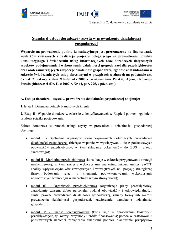 Standard usługi doradczej - asysta w prowadzeniu działalności