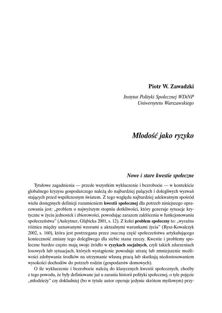 Młodość jako ryzyko - Problemy Polityki Społecznej