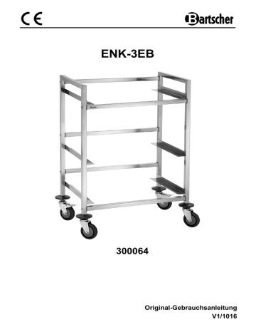 ENK-3EB 300064 Original-Gebrauchsanleitung V1/1016 PL Dane techniczne --------------------------------------------------------------------------------------------------------------------Nazwa: • Wózek do sprzątania skrzyń ENK-3EB Numer artykułu: • 300064 Materiał: Stal chromowo-niklowa Wykonanie: • • Wymiary: • szer. 720 x gł. 500 x wys. 965 mm Nośność maks.: • 100 kg w sumie, 40 kg na parę prowadnic Odstęp pomiędzy prowadnicami: • Do góry 118 mm (E1), Na środku 380 mm (E1, E2, E3), Na dole 250 mm (E1, E2) Rama: z rury o przekroju kwadratu 25,8 x 25,8 mm; Przeznaczony do skrzyń Euro-Norm E1, E2, E3 (masarnia / piekarnia), wymiary: 600 x 400 mm; 3 pary prowadnic; 4 gumowe kółka skrętne, Ø 100 mm, po 1 odboju, 2 kółka skrętne ze stoperami; Zestaw do składania, łatwy montaż Waga: • 9,4 kg --------------------------------------------------------------------------------------------------------------------Zastrzegamy sobie prawo do wprowadzania zmian technicznych! • Rozpakować pojedyncze elementy i zutylizować materiał opakowaniowy. • Sprawdzić kompletność dostawy na podstawie poniższej listy. • Do montażu potrzebny jest dodatkowo klucz szczękowy. • Usunąć folię ochronną z wózka do sprzątania skrzyń. - 41 - Zakres dostawy / Nazwy części Nr Element Ilość Nazwa 2 Części boczne lewa i prawa z 3 zamontowanymi wstępnie prowadnicami 3 5 Poprzeczki 4 2 Kółka skrętne ze stoperami 5 2 Kółka skrętne bez stoperów 6 4 Odboje do kółek skrętnych 7 20 Podkładki kwadratowe 8 10 Śruby 9 1 Klucz imbusowy 1+2 - 42 - Montaż 1 2 7+8 3 6 4 5 1. Najpierw zamontować 5 poprzeczek (3) do lewej części bocznej (1). W tym celu podłożyć po jednej kwadratowej podkładce (7) pomiędzy poprzeczką (3) a częścią boczną (1) oraz pomiędzy częścią boczną (1) a śrubą (8), a następnie dokręcić je kluczem imbusowym. 2. Umocować poprzeczki (3) do prawej części bocznej (2), tak jak to opisano to w poprzednim punkcie. 3. Położyć wózek do sprzątania skrzyń na boku lub postawić go na części bocznej. Przymocować odboje (6) do części bocznych (1+2). Potem wkręcić 4 kółka skrętne (4 + 5) do części bocznych. 4. Ustawić wózek do sprzątania skrzyń na kółkach skrętnych i sprawdzić jego stabilność. - 43 - 5. Wózek do sprzątania skrzyń można wypoziomować za pomocą kółek skrętnych wykręcając je lub wkręcając. Ustalić ich położenie przy pomocy nakrętek zabezpieczających. 6. Po ustawieniu wózka do sprzątania skrzyń w żądanym miejscu, zablokować kółka skrętne (4) przy pomocy stoperów, aby wózek nie został przypadkowo przesunięty lub przewrócony. Wskazówki dla użytkownika • Wózek jest przeznaczony do transportu skrzyń Euro-Norm E1, E2, E3 (masarnia / piekarnia) o wymiarach 600 x 400 mm: • Ustawić odpowiednie skrzynie Euro-Norm na przewidzianych do tego celu prowadnicach. • Odstępy pomiędzy prowadnicami w wózku do sprzątania skrzyń umożliwiają używanie następujących skrzyń Euro-Norm: do góry (118 mm): E1 na środku (380 mm): E1, E2, E3 na dole (250 mm): E1, E2 Wskazówki dotyczące czyszczenia • Wózek do sprzątania skrzyń należy czyścić regularnie miękką, wilgotną ściereczką i łagodnym środkiem czyszczącym. • Nigdy nie stosować gruboziarnistych środków czyszczących, które mogą porysować powierzchnię wózka do sprzątania skrzyń. • Osuszyć wózek do sprzątania skrzyń za pomocą miękkiej ściereczki. Bartscher GmbH Franz-Kleine-Straße 28 33154 Salzkotten Niemcy - 44 - Tel.: +49 (0) 5258 971-0 Faks: +49 (0) 5258 971-120