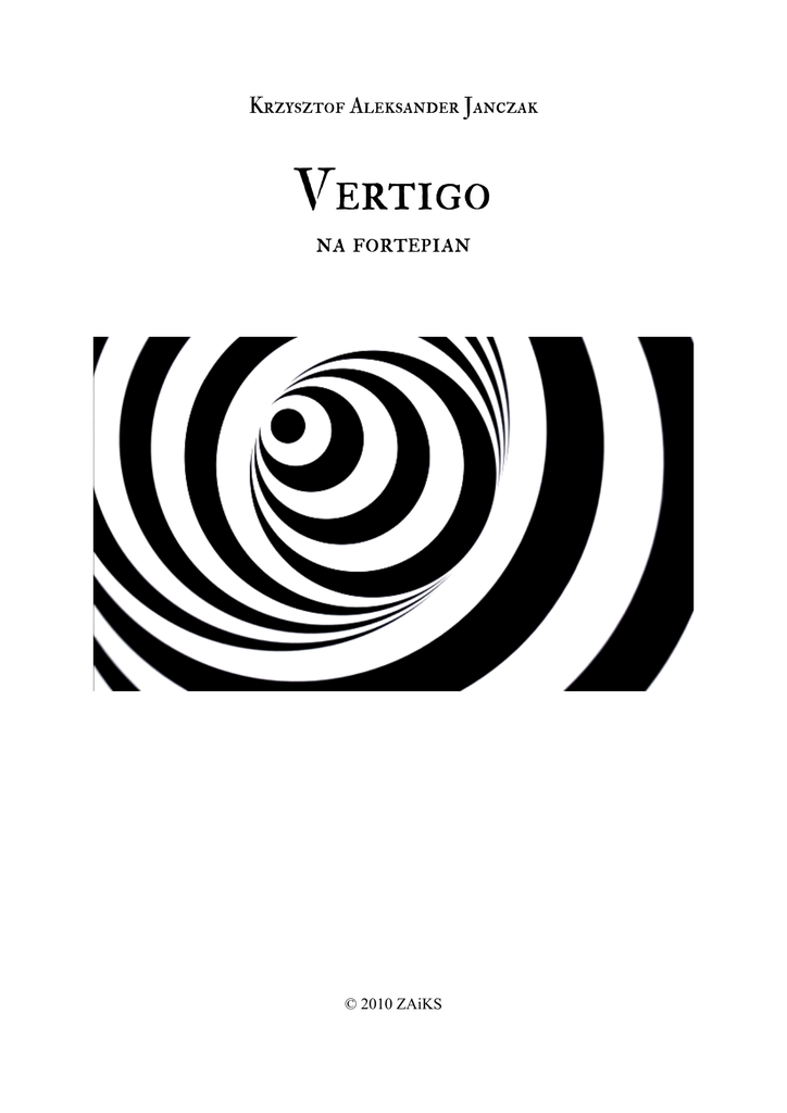 Krzysztof Aleksander Janczak Vertigo na fortepian © 2010 ZAiKS Vertigo Wskazówki wykonawcze Vertigo ma za zadanie wyrobić u ucznia poczucie nieregularnych rytmów synkopowych, bardzo często uŜywanych w muzyce współczesnej. Chciałem za pomocą bardzo prostej techniki i podstawowego palcowania gamy chromatycznej uzyskać efekt większej złoŜoności rytmicznej oraz wraŜenie skomplikowanej rytmicznie faktury fortepianowej. Technika wykorzystania w utworze polega na uprzednim, bezgłośnym zablokowaniu poszczególnych czarnych klawiszy, tak, aby moŜliwe było swobodne palcowanie gamy chromatycznej. Tak teŜ w tekście, lewa ręka blokuje klawisze, podczas gdy prawa wykonuje partię. Nuty ‘zablokowane’, w partii lewej ręki - dźwięki, które „nie odzywają się” oznaczyłem za pomocą najczęściej przyjętej notacji instrumentów perkusyjnych, nuty blokowane, oznaczone są za pomocą rombów, nuty realnie brzmiące, notacją tradycyjną. WaŜnym aspektem utworu jest wartość ósemki, która przez cały czas utworu pozostaje niezmienna. NiezaleŜnie od nienumerycznej grupy ósemek; septoli, sekstoli czy grup regularnych, wartość rytmiczna, czyli realny czas trwania pozostaje ten sam. Tempo wykonania naleŜy dostosować do poziomu i moŜliwości technicznych ucznia. Głównym załoŜeniem agogicznym jest accelerando na przestrzeni całego utworu. Krzysztof Aleksander Janczak Vertigo na fortepian A Motorico precipitato [*] mp sempre accelerando 2 stacc. 7 7 7 e = e [**] 4 6 6 6 6 e=e 7 7 e=e 7 7 6 6 6 6 8 6 7 Krzysztof Aleksander Janczak B e=e p legato 6 6 * Lewą dłonią lub przedramieniem zablokować bezgłośnie klawisze przed rozpoczęciem utworu. ** Wartość ósemki, niezaleŜnie od nienumerycznej czy regularnej grupy, przez cały czas utworu pozostaje niezmienna. Wszystkie prawa zastrzeŜone. © 2010 ZAiKS 2 11 e=e f grave e sonore 15 e = e 19 [*] 20 e=e 7 C e=e mf sempre accelerando 7 7 22 e = e 7 7 6 6 24 6 D e=e 6 6 6 3 27 f grave e sonore 34 31 e=e [*] 7 E 36 f sempre accelerando stacc. 38 7 7 7 7 e = e 6 6 6 4 F Piano subito e = e pp poco sostenuto e morendo 40 sempre 44 ppp 48 G ppp pppp
