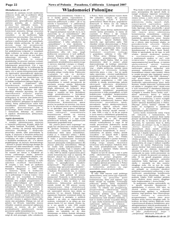 Page 22 Michalkiewicz ze str. 17 skłonność do zaniżania swoich możliwości zwłaszcza wtedy, gdy na podstawie takich deklaracji mają być ustalone ich zobowiązania. Tymczasem d la praktykowania sprawiedliwości społecznej zarówno potrzeby, jak i możliwości powinny być dokładnie znane, bo w przeciwnym razie cala ta koncepcja przestaje mieć sens. Dlatego też pojawia się konieczność autorytetu, którego orzeczenia zarówno co do potrzeb, jak i przede wszystkim - co do możliwości, będą przyjmowane powszechnie i bez zastrzeżeń, to znaczy - bez dyskusji. Oznacza to, że zarówno o możliwościach, jak i potrzebach, decyduje władza polityczna, bo tylko jej decyzj e mogą b yć przyj mowane powszechnie i bez zastrzeżeń. Okazuje się zatem, że sprawiedliwość społeczna może być praktykowana wyłącznie w warunkach braku wolności, że można albo myć ręce, albo myć nogi, ponieważ nie jest możliwe jednoczesne zażywanie i wolności i sprawiedliwości. Jest to wniosek paradoksalny, bo przecież zarówno wolność jak sprawiedliwość mają charakter wartości jednoznacznie pozytywnych. Cóż z tego jednak, kiedy okazuje się, że wykluczają się one wzajemnie? Dlatego, o ile dotąd trwają spory, czy w ustroju komunistycznym udało się zaprowadzić sprawiedliwość społeczną, czy nie, to nie ma najmniejszej wątpliwości, że wolność została tam zamordowana i to już od samego początku. Nie było to w dodatku następstwem jakiegoś błędu czy jak to mówiono - „wypaczenia”, tylko nieuniknionym rezultatem przyjętej w komunizmie koncepcji sprawiedliwości, na użytek której dokonano nie tylko likwidacji własności prywatnej, nie tylko zamo rd o wan i a wo l n o ś ci p o p rzez wprowadzenie totalitarnej władzy posługującej się terrorem jako podstawową metodą rządzenia, ale również - poprzez zmiany kulturowe, polegające na deprawacji kultury, której podstawowym celem było uzasadnianie zarówno komunistycznego porząd ku ekonomi cznego, j ak i politycznego. Zatem również wychodzenie z komunizmu dokonuje się zarówno w aspekcie ekonomicznym, politycznym, jak i kulturowym. Aspekt ekonomiczny Hierarchia społeczna w komunizmie była w zasadzie zdeterminowania miejscem w hierarchii politycznej. Wyjątki, jakim był np. Stefan kardynał Wyszyński, Prymas Polski, cieszący się pozycją najwyższego autorytetu moralnego i duchowego przywódcy narodu, tylko potwierdzały tę regułę. Z miejscem w hierarchii politycznej związany był również poziom zamożności, wynikający nie tylko z oficjalnego udziału w dochodzie narodowym, ale - a w okresie pogłębiającego się kryzysu ekonomicznego - również w postaci łatwiejszego dostępu do deficytowych dóbr materialnych i usług. Na przykład funkcjonariusze partyjni i państwowi, zwłaszcza wyższego szczebla, nie musieli ani stawać w kolejkach po towary codziennego użytku, ponieważ korzystali z sieci specjalnych sklepów, tzw. sklepów za żółtymi firankami, ani oczekiwać w kolejce na operację, co było udziałem zwykłych śmiertelników. W związku z tym, kiedy po spotkaniu Michała Gorbaczowa z prezydentem Ronaldem Reaganem w 1985 roku w Genewie, kiedy to Gorbaczow zadeklarował, iż Związek Radziecki uznał się za pokonanego w zimnej wojnie i teraz trzeba po tym wszystkim w Europie posprzątać, w krajach komunistycznych tamtejsza elita podjęła przygotowania do zajęcia odpowiadającej jej aspiracjom pozycji społecznej w nowych warunkach ustrojowych. Wiadomo było bowiem, że wycofanie się imperium sowieckiego ze Środkowej Europy pociągnie za sobą zmianę ustroju w państwach tego regionu, a w nowym ustroju o pozycji społecznej nie będzie już decydowała znajomość Lenina na wyrywki i miejsce w aparacie władzy, tylko raczej stan posiadania. Dlatego też, już od połowy lat 80-tych, wprawdzie jeszcze oficjalnie socjalizm pozostawał najlepszym ustrojem na świecie, ale już wokół przedsiębiorstw państwowych zaczęły powstawać spółki nomenklaturowe. Dlatego „nomenklaturowe”, bo nie każdy mógł do nich przystąpić, tylko członkowie News of Polonia Pasadena, California Listopad 2007 Wiadomości Polonijne komunistycznej nomenklatury. Chodzi o to, że w każdej gminie, województwie i wreszcie - w państwie, obsadzenie pewnych stanowisk publicznych, a także - jak to się mówiło w komunizmie - w „administracji gospodarczej” - wymagało zatwierdzenia przez stosowny komitet partii; albo gminny, albo wojewódzki, albo Centralny. W żargonie partyjnym nazywało się to, że te stanowiska są „w nomenklaturze” albo komitetu gminnego, albo wojewódzkiego, albo Centralnego, zaś ludzi, którzy te stanowis ka zaj mowali, nazywano „nomenklaturą”. I tylko członkowie tej „nomenklatury”, a wiec dyrektorzy i członkowie zarządu przedsiębiorstwa, sekretarze partii, wyżsi oficerowie milicji i aparatu bezpieczeństwa, wojskowi, prokuratorzy albo ich żony, mogli praktycznie uczestniczyć w tych spółkach, chociaż formalnie nie było ograniczeń prawnych. Typowa spółka nomenklaturowa z jednej strony monopolizowała zaopatrzenie przedsiębiorstwa państwowego w surowce, materiały i energię, a z drugiej sprzedaż wyrobów gotow ych, przechwytując od przodu i od tyłu cały zysk przedsiębiorstwa, w którym zostawała bezradna załoga i trochę dymu. Praktycznie w yglądało to tak, że d yrektor przedsiębiorstwa zawierał z samym sobą, jako prezesem spółki nomenklaturowej, odpowiednie umowy. W ten sposób nomenklatura w ramach przygotowań do powitania nowego ustroju, dokonywała „pierwotnej akumulacji kapitału”, która mogła dokonywać się wyłącznie przez rozkradanie majątku państwowego, bo innego w zasadzie nie było. Bezradność załogi przedsiębiorstwa i bezradność społeczeństwa gwarantowana była przez „surowe prawa stanu wojennego”, specjalnie w tym celu wprowadzone i utrzymywane. Komunistyczny aparat jeszcze r