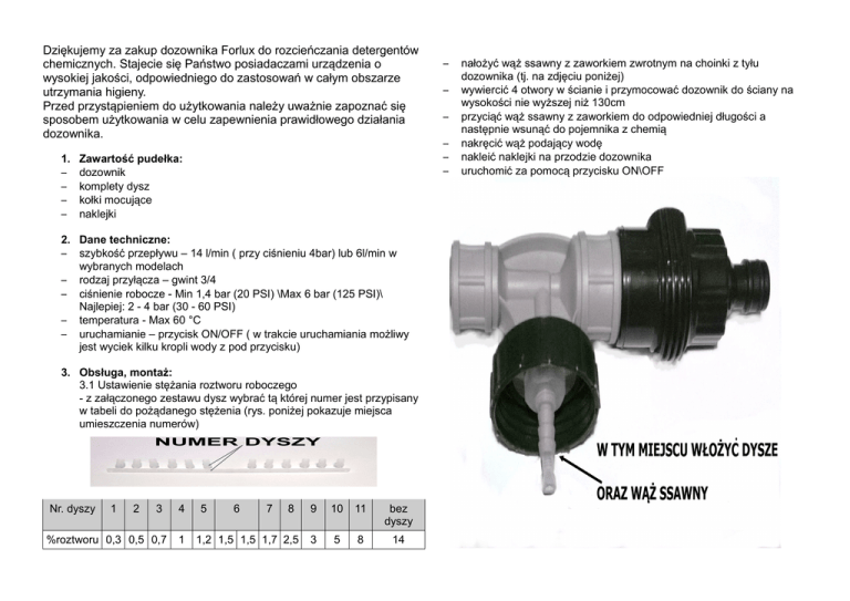 Dziękujemy za zakup dozownika Forlux do rozcieńczania