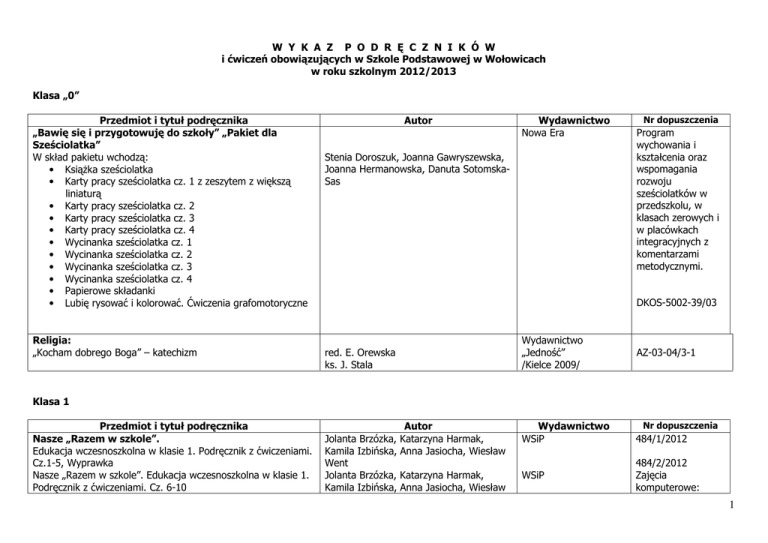 WYKAZPODR Ę CZNIK Ó W i ćwiczeń obowiązujących w Szkole