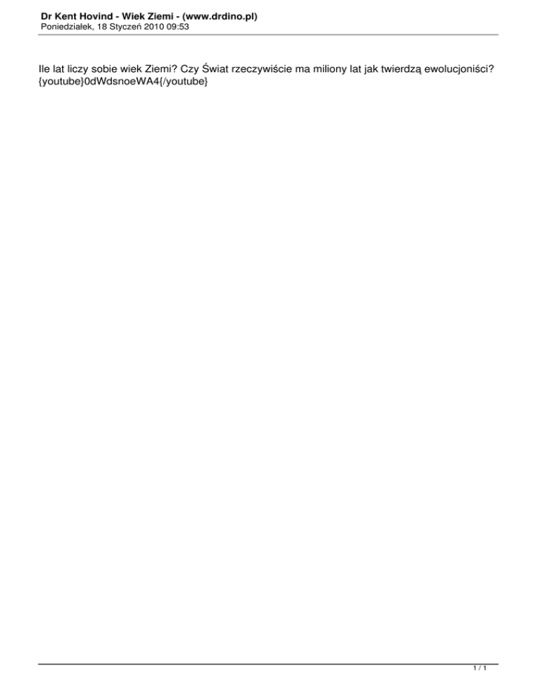 Dr Kent Hovind - Wiek Ziemi - (www.drdino.pl)