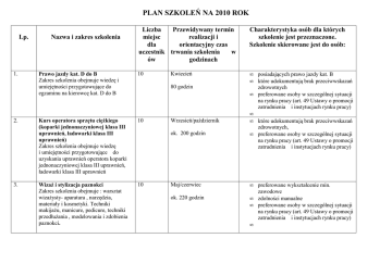 PLAN SZKOLEŃ NA 2010 ROK