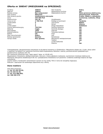 Oferta nr 308547 (MIESZKANIE na SPRZEDAŻ)