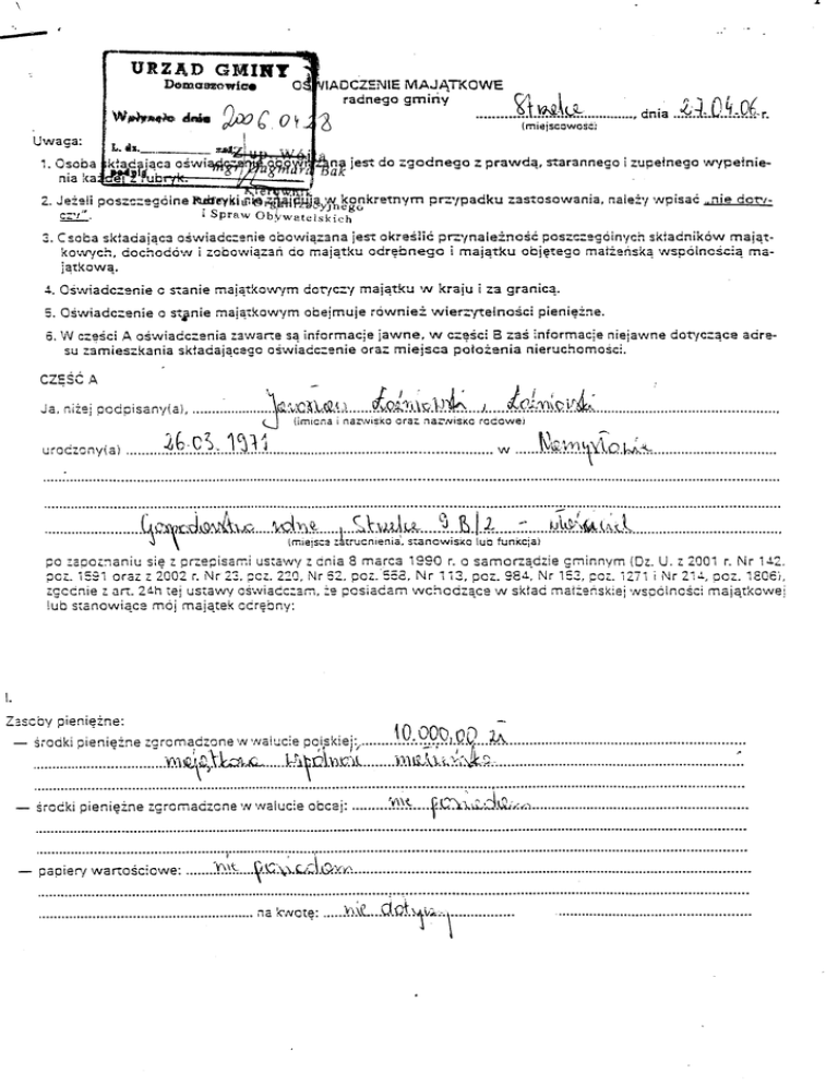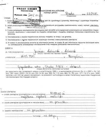 4. Oiwiadczenie o stanie maiqtkow.TmdotTczy maiqtku 'ry kraiu i za granicq.