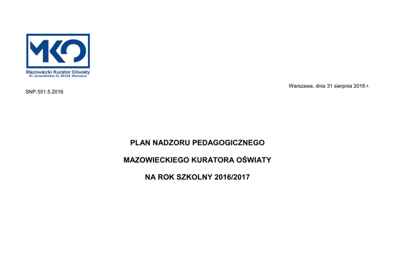 plan nadzoru pedagogicznego mazowieckiego kuratora oświaty na