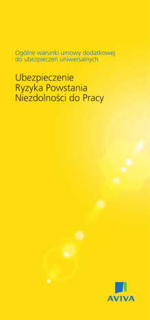 Ogólne warunki umowy dodatkowej do ubezpieczeń uniwersalnych Ubezpieczenie Ryzyka Powstania Niezdolności do Pracy OGÓLNE WARUNKI UBEZPIECZENIA RYZYKA POWSTANIA NIEZDOLNOŚCI DO PRACY NP/J/3/2007 Niniejsze ogólne warunki ubezpieczenia stosuje się wyłącznie do umów ubezpieczenia zawieranych jako uzupełnienie umów ubezpieczenia na życie zawieranych ze spółką Aviva Towarzystwo Ubezpieczeń na Życie S.A. na podstawie: 1) Ogólnych Warunków Ubezpieczenia Uniwersalnego PERSPEKTYWA, 2) Ogólnych Warunków Ubezpieczenia Uniwersalnego PLUS, 3) Ogólnych Warunków Młodzieżowego Ubezpieczenia Uniwersalnego ABSOLWENT. § 1. DEFINICJE 1. Ilekroć w niniejszych ogólnych warunkach, wniosku o zawarcie umowy ubezpieczenia na ich podstawie, dokumencie potwierdzającym zawarcie umowy ubezpieczenia oraz w innych pismach i oświadczeniach składanych w związku z zawarciem tej umowy lub w jej wykonaniu używa się wymienionych poniżej terminów, należy przez nie rozumieć w odpowiednim przypadku i liczbie: 1) główna umowa ubezpieczenia lub umowa główna – umowa ubezpieczenia zawierana na podstawie jednych z ogólnych warunków wymienionych na wstępie niniejszych ogólnych warunków; 2) dodatkowa umowa ubezpieczenia lub umowa dodatkowa – umowa ubezpieczenia zawierana na podstawie niniejszych ogólnych warunków ubezpieczenia; 3) działalność zarobkowa – działalność ubezpieczonego nakierowana na osiągnięcie przychodu, wykonywana w szczególności na podstawie umowy o pracę, jakiejkolwiek innej umowy lub w ramach wolnego zawodu; 4) niezdolność do pracy – powstała na skutek rozstroju zdrowia lub uszkodzenia ciała ubezpieczonego, zaistniałych w trakcie trwania ochrony ubezpieczeniowej, całkowita niezdolność ubezpieczonego do wykonywania jakiejkolwiek działalności zarobkowej, trwająca nieprzerwanie w trakcie trwania ochrony ubezpieczeniowej przez 12 (dwanaście) miesięcy i mająca po zakończeniu tego okresu charakter trwały i nieodwracalny; 5) suma ubezpieczenia z tytułu niezdolności do pracy – minimalna kwota, którą na warunkach określonych w umowie ubezpieczenia Towarzystwo zobowiązane jest zapłacić w razie niezdolności do pracy ubezpieczonego, 6) zdarzenie ubezpieczeniowe – niezdolność do pracy ubezpieczonego. 1 2. Wszelkie pojęcia, inne niż wskazane w ustępie poprzedzającym, stosowane są w niniejszych ogólnych warunkach zgodnie ze znaczeniem nadanym im przez ogólne warunki wymienione na wstępie. § 2. ZAWARCIE UMOWY DODATKOWEJ 1. Umowa dodatkowa zawierana jest w trybie złożenia przez ubezpieczającego oferty zawarcia takiej umowy oraz przyjęcia tej oferty przez Towarzystwo. 2. Oferta składana jest przez ubezpieczającego na odpowiednim formularzu Towarzystwa łącznie z wnioskiem o zawarcie głównej umowy ubezpieczenia. Jeżeli Towarzystwo przyjmie ofertę ubezpieczającego, umowę dodatkową uważa się za zawartą z chwilą zawarcia głównej umowy ubezpieczenia. § 3. OKRES UBEZPIECZENIA 1. Z zastrzeżeniem ust. 2-4, ochrona ubezpieczeniowa w zakresie określonym w niniejszych ogólnych warunkach i zawartej na ich podstawie umowie dodatkowej przysługuje ubezpieczonemu od dnia rozpoczęcia ochrony udzielanej z tytułu głównej umowy ubezpieczenia do dnia rozwiązania umowy dodatkowej. 2. Jeżeli po zawarciu umowy dodatkowej ubezpieczony: 1) rozpocznie działalność zarobkową, zmieni dotychczasową lub podejmie dodatkową działalność zarobkową, 2) rozpocznie uprawianie zajęć sportowych lub rekreacyjnych o ryzykownym charakterze, w szczególności sportów spadochronowych, lotniczych, motorowodnych, motorowych, wspinaczki, speleologii, nurkowania, raftingu, skoków na linie (bungee jumping), 3) rozpocznie przekraczający 90 (dziewięćdziesiąt) kolejnych dni pobyt w państwach innych niż: państwa Unii Europejskiej, Norwegia, Islandia, Szwajcaria, Stany Zjednoczone i Kanada, ochrona ubezpieczeniowa wygasa z dniem nastąpienia tych zdarzeń i Towarzystwo wolne jest od odpowiedzialności, chyba że okoliczności powyższe nie mają wpływu na zwiększenie prawdopodobieństwa zajścia zdarzenia ubezpieczeniowego. 3. Jeżeli okoliczności, o których mowa w ust. 2 mają wpływ na zwiększenie prawdopodobieństwa zajścia zdarzenia ubezpieczeniowego, Towarzystwo w terminie 30 (trzydziestu) dni od dnia otrzymania oświadczenia ubezpieczającego lub ubezpieczonego o zajściu tych okoliczności, obowiązane jest poinformować ubezpieczającego o wygaśnięciu ochrony ubezpieczeniowej oraz rozwiązaniu umowy dodatkowej z dniem otrzymania przez Towarzystwo powyższego oświadczenia lub zaproponować mu warunki ubezpieczenia odpowiednie do aktualnego ryzyka ubezpieczeniowego ponoszonego przez Towarzystwo, wyznaczając mu jednocześnie przynajmniej siedmiodniowy termin do wniesienia sprzeciwu. 2 4. W razie braku sprzeciwu uważa się, iż oferta Towarzystwa, o której mowa w ust. 3, została przyjęta, a umowa dodatkowa została zmieniona zgodnie z warunkami zaproponowanymi przez Towarzystwo, w dniu następującym po upływie terminu wyznaczonego do wniesienia sprzeciwu. W razie wniesienia sprzeciwu umowa dodatkowa ulega rozwiązaniu z dniem otrzymania przez Towarzystwo sprzeciwu ubezpieczającego. § 4. OCHRONA UBEZPIECZENIOWA 1. Z zastrzeżeniem ust. 2, ochrona ubezpieczeniowa polega na zobowiązaniu Towarzystwa do zapłaty, w razie powstania w trakcie trwania ochrony ubezpieczeniowej niezdolności do pracy ubezpieczonego, świadczenia ubezpieczeniowego będącego sumą wartości lokacyjnej oraz większej z dwóch wartości, którymi są: suma ubezpieczenia z tytułu niezdolności do pracy ubezpieczonego oraz wartość polisy. 2. Jeżeli dodatkowa umowa ubezpieczenia zawarta została na podstawie niniejszych ogólnych warunków ubezpieczenia jako uzupełnienie głównej umowy ubezpieczenia zawartej na podstawie Ogólnych Warunków Młodzieżowego Ubezpieczenia Uniwersalnego ABSOLWENT, świadczenie z tytułu niezdolności do pr