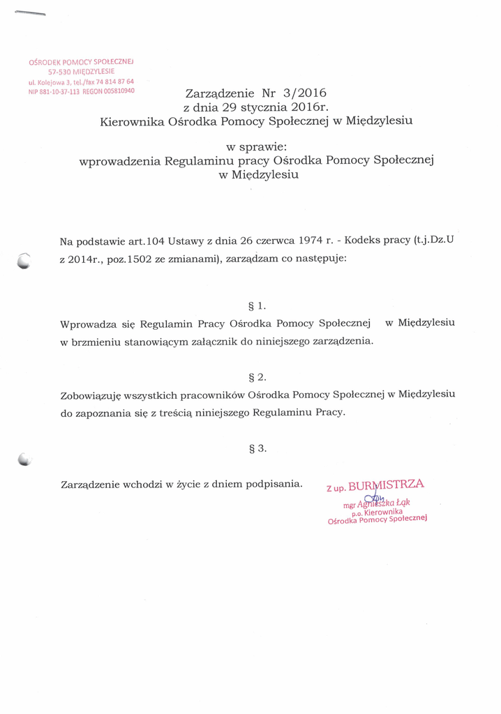 Zarządzenie Nr 3/2016 z dnia 29 stycznia 2016r. w sprawie