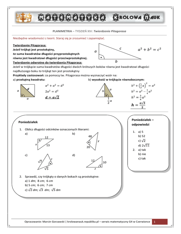 TYDZIEŃ XIV: Twierdzenie Pitagorasa