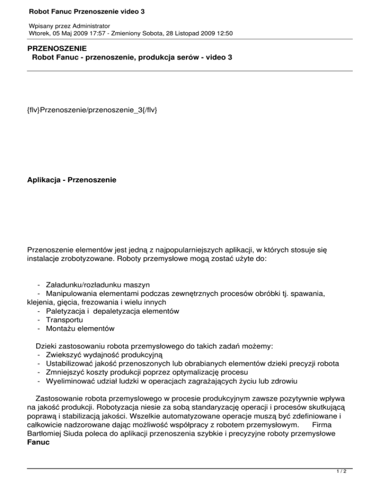związanej z przenoszeniem elementów.Roboty przemysłowe Fanuc, stworzone specjalnie do