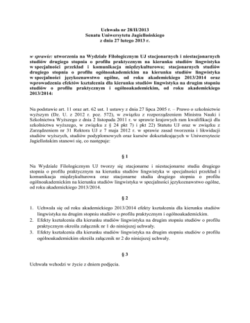Uchwała nr 28/II/2013 Senatu Uniwersytetu Jagiellońskiego z dnia