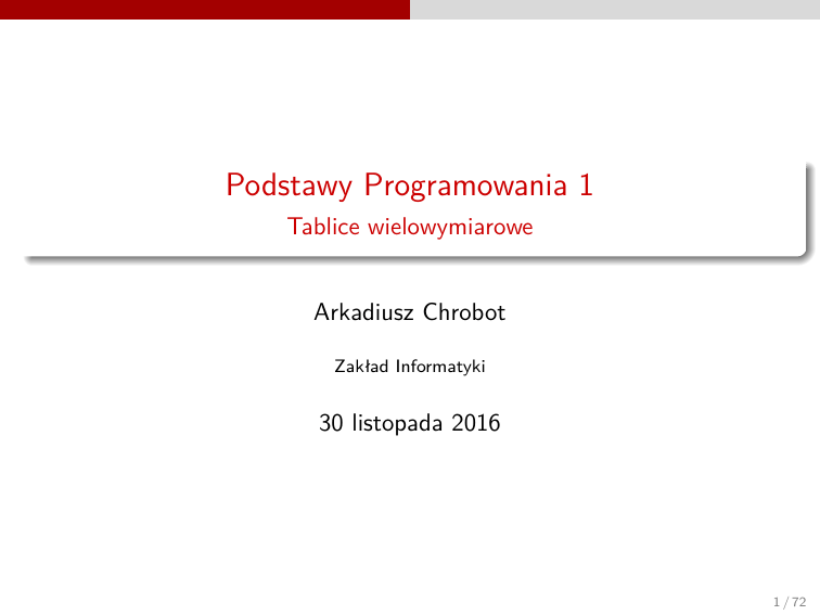 takiej parze nawiasów kwadratowych należy podać liczbę elementów przypadających na poszczególny wymiar. Tablice dwuwymiarowe (tablice tablic)