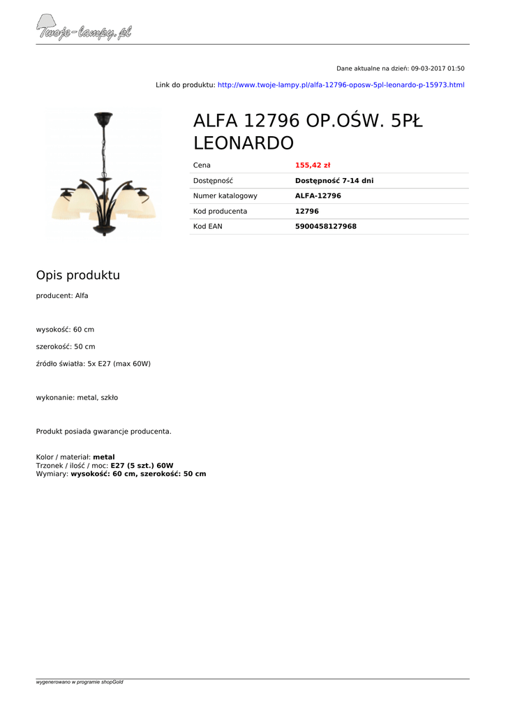 alfa 12796 op.ośw. 5pł leonardo - Twoje