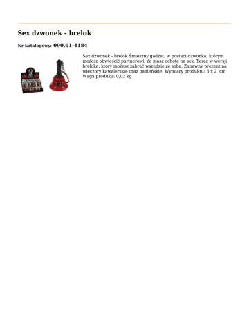 Sex dzwonek - brelok Nr katalogowy: 090,61-4184 Sex dzwonek - brelok Śmieszny gadżet, w postaci dzwonka, którym możesz obwieścić partnerowi, że masz ochotę na sex. Teraz w wersji breloka, który możesz zabrać wszędzie ze sobą. Zabawny prezent na wieczory kawalerskie oraz panieńskie. Wymiary produktu: 6 x 2 cm Waga produku: 0,02 kg