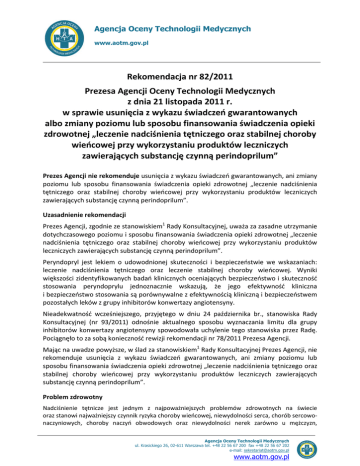 Rekomendacja nr 82/2011 Prezesa Agencji Oceny Technologii