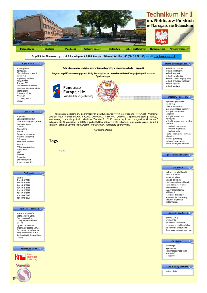 Strona główna Rekrutacja Plan Lekcji Wirtualny Spacer Zastępstwa Szkoły dla Dorosłych Najlepsza Klasa Partnerzy-Sponsorzy Zespół Szkół Ekonomicznych, ul.Sobieskiego 6, 83-200 Starogard Gdański, tel./fax +48 (58) 56 222 49, e-mail: [email protected] Menu Główne Strona główna Rekrutacja Olimpiady maturalne i zawodowe Regionalny Konkurs Recytatorski Krótko o ZSE Kształcenie zawodowe Jubileusz 50 - lecia szkoły Kadra szkoły Promocja szkoły Przetargi Wirtualny spacer Szukaj Uczniowie Stypendia Osiągnięcia uczniów Konkurs na najlepszą klasę Samorząd szkolny Plan lekcji Zastępstwa Matura Egzaminy zawodowe Praktyki zawodowe E-dziennik Poczta dla uczniów Kanał RSS Wykaz podręczników Wydarzenia Sport Gazetka E-learning Gry edukacyjne Strony nauczycieli oferta edukacyjna szkoły Rekrutacja uczestników zagranicznych praktyk zawodowych do Hiszpanii Projekt współfinansowany przez Unię Europejską w ramach środków Europejskiego Funduszu Społecznego. technik technik technik technik technik technik technik technik ekonomista informatyk analityk handlowiec obsługi turystycznej organizacji reklamy logistyk spedytor programy i projekty Rekrutacja uczestników zagranicznych praktyk zawodowych do Hiszpanii w ramach Programu Operacyjnego Wiedza Edukacja Rozwój 2014-2020 - Projekt: „Praktyki zagraniczne szansą rozwoju zawodowego młodzieży i dorosłych w Zespole Szkół Ekonomicznych w Starogardzie Gdańskim” odbędzie się 27 października 2016r o godz.15.00 w sali nr 11. Do rekrutacji przystąpią uczniowie z II i III klasy Technika Obsługi Turystycznej, którzy złożyli formularz aplikacyjny. Margareta Moritz. Tags Wybieram przyszłość zawodową szkolne koło caritas "der schlüssel zur karriere" praktyki zagraniczne hiszpania praktyki zagraniczne portugalia praktyki zagraniczne - wielka brytania technik ekonomista technik informatyk technik logistyk polsko - niemiecka wymiana młodzieży projekt etwinning zachowaj równowagę szkoła promująca zdrowie PROJEKT projekty zakończone biblioteka Archiwum Galeria Rok 2015/2016 Rok 2014/2015 Rok 2013/2014 Rok 2012/2013 Rok 2011/2012 Rok 2010/2011 Rok 2009/2010 Rok 2008/2009 godziny pracy biblioteki o nas w mediach uczniowie piszą katalog biblioteki koło sympatyków biblioteki nasze zainteresowania lektury do matury zasady sporządzania bibliografii. regulamin biblioteki regulamin internetowego centrum informacji multimedialnej Najczęściej czytane Rekrutacja (38435) Kadra Zespołu Szkół Ekonomicznych w Starogardzie Gdańskim (24140) Egzamin maturalny informacje ogólne (20028) Zestaw podręczników na nowy rok szkolny (12628) Konkurs Na Najlepszą Klasę (10460) pedagog i psycholog godziny pracy profilaktyka doradztwo zawodowe prezentacje multimedialne dostosowania maturalne dostosowania egzaminacyjne dla rodziców Przydatne Linki rekrutacja wywiadówki konsultacje z rodzicami plan zajęć e-dziennik dokumenty szkolne statut szkoły liczba odwiedzin odwiedziło nas: 2678926 imieniny Dominika, Franciszki, Katarzyny Do końca roku szkolnego pozostało 106 dni. przydatne linki europejski fundusz społeczny Zespół Szkół Ekonomicznych ul.Sobieskiego 6 83-200 Starogard Gdański tel./fax +48 (58) 56 222 49 e-mail: [email protected] Czas generowania strony: 0.026s.