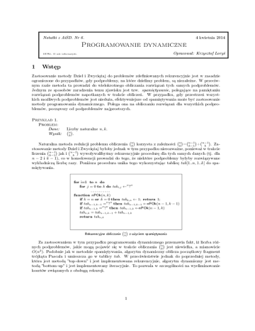 Unikniemy tego mankamentu stosuj¡c programowanie dynamiczne. Niech