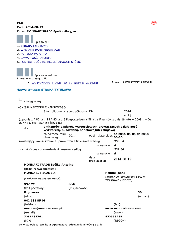 PSr: Data: 2014-08-19 Firma: MONNARI TRADE Spółka Akcyjna