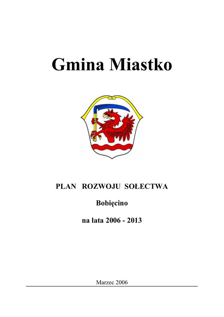 Gmina Miastko PLAN ROZWOJU SOŁECTWA Bobięcino na lata 2006 - 2013 Marzec 2006 1. Lokalizacja projektu. Bobięcino położone jest w Gminie Miastko ,w powiecie bytowskim,w woj. pomorskim,przy granicy z woj. Zachodniopomorskim . Bobięcino położona jest w odległości 15 kilometrów na zachód od Miastka nad Jeziorem Bobięcinskim Małym,przy drodze gminnej z Miastka do Żydowa. Mapa Gminy Miastko z lokalizacją Sołectwa Bobięcino. 160 150 10 0 Jez. Tursko 150 Jez. Smolenko Dretyń J. Gierzing Świerzenko 0 15 Jez. Trzcińskie 15 0 Kawcze 175 Trzcinno 150 Świerzno 15 J. Bagno Leśn 200 Jez. Kwisno Jez. Kwisno 175 Jez. Okunińskie 0 200 15 0 J. Oc zko 5 12 A 200 Jez. Skąpe J. Wielkie Wałdowo 100 Dretynek Lubkowo Jez. Kamaszyna Jez. Skąpe J. Małe Jez. Zielonka Jez. Michowskie Jez. Byczyńskie Jez. Kołoleż Jezioro Bluj Jez. Wlk. Gomolskie 125 Jez. Czarne Jezioro Smołowe Jez. Gomylno Jez. Kamień Łodzierz Bobęcino Jez. Lipkowo (pł as kie ) Dolsko Jez. Orle Jez. Czarne Jez. Dolskie Jez. Bobiecińskie Małe Jezioro Bobiecińskie Wielkie Jez. Lednik Jezioro Piasek 150 200 Przęsin Jez. Kamnick ie Jez. Siadło 200 H Jez. Czarnka J. Pajerskie 20 0 OSIRON Jez. Świeszyńskie Jez. Miastko Jez. Wołczy ca Pasieka 200 Jezioro Bobiecińskie Wielkie 175 Jez. Kościelne Świeszyno 17 5 150 Jezioro Głębokie Jez. Lipczyńskie Jez. Średnie Jez. Studzieniczno (O lch y) (S tu dz ieni ca ) Wołcza Mała Bukowisko Jez. Wołcza Mała Jez. Białynia J. Studzieniczno Małe 17 5 Jez. Radnik Miłocice Jez. Słosineckie Małe 175 0 20 J. Słos ine ckie Wi el ki e Jezioro Głębokie Piaszczyna 2. Analiza zasobów środowiskowych, gospodarczych i społecznych Wieś przylega od zachodu do Jeziora Bobięcinskiego Wielkiego,od południa i północy otoczona jest lasami.Cała wieś położona jest w Obszarze Chronionego Krajobrazu Jezioro Bobięcinskie Wielkie ze Skibską Górą . Wzdłuż drogi do Żydowa przebiega niebieski szlak turystyczny ’’Kraina lasów i jezior’’ oraz ścieżka rowerowa. Są to tereny o wysokich walorach przyrodniczych. W skład Sołectwa Bobięcino wchodza miejscowości Kobiecino , Malęcino o Gołębsko . Sołectwo liczy 207 mieszkańców. Na tym terenie zamieszkuje społeczność wielokulturowa o pochodzeniu: polskim, ukraińskim, niemieckim i kaszubskim. Sołectwo to wsie po byłych zakładach rolnych tzw. PGR z dużym bezrobociem . Bezrobocie stanowi w powiecie bytowskim 34,7 % (na koniec grudnia 2005 r.). Wskaźnik G wynosi 554,43 zł/mieszkańca. Młodzież wykształcona nie powraca do swojej miejscowości , emigruje poza granice gminy i państwa. Obserwuje się duży pesymizm wśród ludności, niechęć do działania, a także popadanie w alkoholizm i chuligaństwo. Wszystkie te elementy sprawiają ,że niezbędne jest zjednoczenie lokalnej społeczności do wspólnych działań na rzecz regionu i nas samych. 3. Mocne i słabe strony wsi Bobięcino. Mocne strony wsi Bobięcino. 1.Atrakcyjne położenie geograficzne w Obszarze Chronionego Krajobrazu o walorach krajoznawczo- turystycznych. 2.Jeziora Bobięcinskie Małe i Bobięcinskie Wielkie które uznane zostały za użytki ekologiczne. 3.Dużo młodzieży 4.Istniejąca szkoła żeglarska. 5.Istniejący ośrodek harcerski . 6.Dawny folwark 7.Chęć mieszkańców wsi do angażowania się w życie społeczne sołectwa: wspólne organizowanie imprez kulturalnych,sołecko-gminnych. 8.Wydzielone działki rekreacyjne. 9.Potrzeba działania i nauki wśród mieszkańców co może przełożyć się na aktywne uczestniczenie w przyszłych szkoleniach organizowanych w naszej wsi. Słabe strony miejscowości Bobięcino: 1. Brak świetlicy wiejskiej. 2. Brak lokalu na zorganizowanie imprez okolicznościowych. 3.Zły stan finansowy mieszkańców naszej miejscowości . 4.Narastające bezrobocie wśród młodzieży. 5.Patologie społeczne: alkoholizm, chuligaństwo 6.Mało estetyczne gospodarstwa. 3.Opis Planu Rozwoju sołectwa Bobięcino na lata 2006-2010. Mieszkańcy Bobięcina w ramach Planu Rozwoju Sołectwa Bobięcino na lata 2006-2010 planują na przestrzeni tych lat wykonać szereg zadań ,których celem jest poprawa sytuacji ekonomiczno- społecznej . Na rok 2006/2008 planowana jest budowa świetlicy wiejskiej lub zawarcie porozumienia z ZHP o wspólnym użytkowaniu istniejących już budynków . a także :uporządkowanie plaży ,zagospodarowanie terenu pod boisko sportowe, poszerzenie kanału łączącego jeziora, wybudowanie miejsca widokowego i małego pomostu na wyspie. W roku 2007zostanie wykonany chodnik i zostanie przeprowadzona rekultywacja skwerku przy przystanku PKS. Wroku2008 budowa placu zabaw . Uporządkowanie wschodniego półwyspu pomiędzy jeziorami Bobięcińskimi 2007 Uporządkowanie wschodniego brzegu jeziora Bobięcino Małe i budowa pieszego traktu od plaży w kierunku kanału łączącego jeziora 2009 Ścieżka rowerowa brzegiem Jezior Bobięcinśkich (ścieżka łącząca województwa) 2009 Budowa sanitariatów w pobliżu plaży 2010 Dzięki realizacji tych przedsięwzięć można by zacząć realizować w naszym sołectwie szkolenia, kursy ,warsztaty oraz imprezy różnego rodzaju. Mieszkańcy chcą wyeksponować i poprawić wizerunek wsi, co ich zdaniem przyciągnie turystów nie tylko z okolic ale także spoza naszego terenu , co przyczyni się do jeszcze większego rozwoju naszego sołectwa. Potrzeby Uporządkowanie plaży nad Jeziorem Bobięcino Małe. Boisko sportowe Poszerzenie kanału łączącego jezioro Bobięcino Małe i Wielkie Charakterystyka Stanu Istniejącego Opis Inwestycji - Poszerzenie piaszczystej części plaży - Budowa skalniaka lub klombu przy skrzyżowaniu Plaża rozjeżdżona dróg biegnących wzdłuż brzegu jeziora. przez samochody, - Zabezpieczenie plaży przed wjazdem na nią samochodami zanieczyszczona, - Wyznaczone miejsc parkingowych przy mulista. Przy plaży odrapany, durzy, mało plaży estetyczny kontener na - Dno kąpieliska oczyszczone z kamieni i wodorostów od