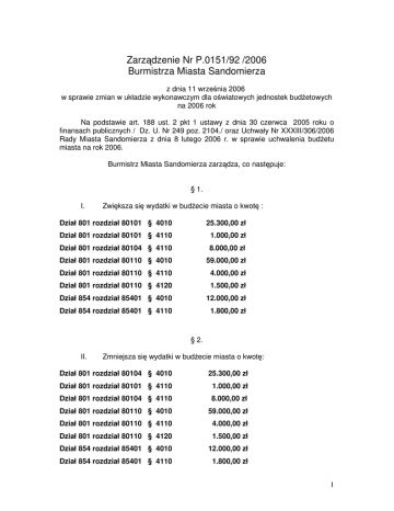Zarządzenie Nr P.0151/92 /2006 Burmistrza Miasta Sandomierza