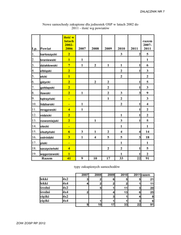 zakupione samochody w powiatach 2007-2011