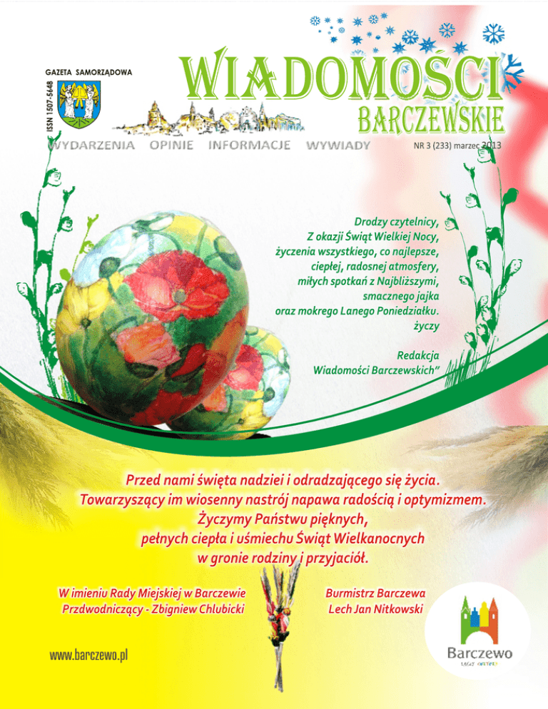 Luty 2013 - 4 lutego nieznany sprawca ukradł rynny i blachę miedzianą z budynku mieszkalnego w Łęgajnach. Straty oszacowano na ok. 1.200 zł. - 5 lutego w Nikielkowie nieznany sprawca z ciągnika siodłowego (tzw. ciężarówki) ukradł 2 akumulatory. Właściciel wycenił straty na 2 tys. złotych. - 7 lutego o godz. 13 na ul. Wojska Polskiego barczewscy policjanci zatrzymali pijanego kierowcę Volkswagena Passata. Jadący „na dwóch gazach” mężczyzna miał aż 3 promile alkoholu w wydychanym powietrzu. - 6 lutego w Łęgajnach sprawcy narodowości romskiej, o nieustalonej tożsamości, dokonali kradzieży pieniędzy. Korzystając z nieuwagi gospodarzy domu, w którym usiłowali sprzedać swoje towary, ukradli 1.100 zł. - 7 lutego także w Łęgajnach syn okradł matkę. Wyciągnął jej z torebki 1.000 zł. Pieniądze zostały odzyskane, a wyrodny syn przyznał się do kradzieży. - 9 lutego w Niedźwiedziu 3 sprawców ukradło metalowe elementy o łącznej wartości ok. 416 zł. Sprawcy zostali szybko ustaleni, niestety swoje „złodziejskie łupy” sprzedali w punkcie skupu złomu. - 8 lutego w Barczewie 3 nieletnich chłopców ukradło ze sklepu odzież o łącznej wartości 251 zł. Młodzi złodzieje szybko zostali namierzeni, a skradziona odzież w całości odzyskana. - 13 lutego na ul. Tuwima w Barczewie została ujawniona kradzież energii elektrycznej. Pomysłowy złodziej „złota rączka” podłączył się poza licznikiem do sieci energetycznej. Sprawca kradzieży został ustalony i ma teraz do zapłacenia rachunek opiewający na kwotę 1.600 zł. - bardzo burzliwy i dramatyczny przebieg miały Walentynki (14 lutego) w hotelu robotniczym przy ul. Olsztyńskiej w Barczewie. Podczas małżeńskiej kłótni mężczyzna usiłował zadać nożem cios swojej żonie. Na szczęście kobiecie udało się wyswobodzić z rąk oprawcy. Mężczyzna został zatrzymany i decyzją prokuratora tymczasowo aresztowany na 3 miesiące. - 15 lutego w Krupolinach „wpadło” w ręce policji 3 sprawców, którzy od połowy grudnia do połowy lutego dokonało 3 włamań do garaży. Złodzieje kradli głównie maszyny i urządzenia elektryczne, blachę oraz urządzania pomiarowe. Poszkodowani straty wycenili na 7,5 tys. złotych. Niestety skradzionego sprzętu nie odzyskano, ponieważ złodzieje spieniężyli go w punkcie skupu złomu. - 18 lutego na ul. Wojska Polskiego w Barczewie zuchwali złodzieje w „biały dzień” ukradli z terenu jednej z firm aż 100 sztuk płyt gąsienicowych. Poszkodowany właściciel firmy wycenił straty na 5 tys. złotych. Sprawcy jak dotąd nie zostali ustaleni. - 23 lutego w Kluczniku barczewscy policjanci natrafili na dowód przestępstwa. Na drzewie wisiał, częściowo już rozebrany, dzik. Kłusownicy złapali zwierzynę we wnyki. Postępowanie jest w toku, bowiem sprawcy jak dotąd nie są ustaleni. W lutym barczewscy policjanci zatrzymali 11 osób poszukiwanych listami gończymi. W dalszym ciągu barczewscy stróże prawa kontynuują akcję „Trzeźwy poranek”. W losowo wybrane dni tygodnia badają trzeźwość kierowców. Policjanci wraz z nadejściem wiosny rozpoczną także częstsze pomiary prędkości samochodów, szczególnie w terenie zabudowanym. Zebrał Grzegorz Gawrylczyk Nagroda dla młodej artystki z Wipsowa Piękne ujęcie nowego-starego Barczewa Rozalia Wojszel z Wipsowa zajęła 1 miejsce w prestiżowym wojewódzkim konkursie fotograficznym na pocztówkę okolicznościową pt. "Pocztówka dla Europy"! Projekt był współfinansowany ze środków Unii Europejskiej i organizowany przez Europe Direct Olecko przy Warmińsko-Mazurskiej Izbie Rolniczej. Celem konkursu było popularyzowanie w Unii Europejskiej wiedzy o Regionie Warmii i Mazur - jego kulturze, architekturze, przyrodzie, ale przede wszystkim włączenie młodzieży w kształtowanie tego europejskiego wizerunku naszego Regionu. Rozalia przedstawiła w konkursie m.in. zdjęcie: Staw Młyński w Barczewie. To właśnie to zdjęcie zdobyło uznanie całej Komisji Konkursowej oceniającej w sumie 24 młodych artystów i ich 92 zdjęcia. Jest to jedno z piękniejszych ujęć nowegostarego Barczewa. WIADOMOSCI BARCZEWSKIE Wydanie bieżące i numery archiwalne dostępne są w Biurze Informacji, w Barczewie przy ul. Mickiewicza 12 oraz na www.gazeta.barczewo.pl Współpraca: B. Silska, R. Surmański, B. Caruk, B. Zabłotny, M. Jaroszewska, D. Mikołajczuk. Redaktor naczelny: Mariola Łukowska-Juckiewicz e-mail: [email protected] Redaktor Grzegorz Gawrylczyk Redaktor, korekta Anna Rok Redaktor Natalia Machałek Redaktor Wojciech Zenderowski e-mail: [email protected] Skład DTP: Zbigniew Kozłowski e-mail: [email protected] Wydawca: Centrum Kultury i Promocji Gminy Adres: Barczewo, ul. Słowackiego 5 Tel. / fax. 89 514 82 81 Druk: Zakład ALGRAF s.c., 11-300 Biskupiec, ul Harcerska 19 Redakcja nie ponosi odpowiedzialności za treść ogłoszeń i reklam, nie zwraca tekstów nie zamówionych oraz zastrzega sobie prawo skracania i opracowywania tekstów. Redakcja informuje o możliwości zamieszczenia reklam. www.gazeta.barczewo.pl ZDJĘCIE NA ODKŁADCE: ZBIGNIEW RAMSKO KOZŁOWSKI 2 GAZETA SAMORZĄDOWA 3 (233) marzec 2013 Informacje Nagroda Marszałka Województwa Warmińsko-Mazurskiego Gmina Barczewo z Laurem „Najlepszym z Najlepszych” Sukces goni sukces - tak śmiało można skomentować kolejną nagrodę jaką otrzymało Barczewo. Gmina znalazła się w gronie tegorocznych laureatów Nagrody Marszałka Województwa Warmińsko-Mazurskiego „Laur Najlepszym z Najlepszych” w kategorii „Rozwój społeczno-gospodarczy regionu”. Jest to nagroda w plebiscycie wyłaniającym swoistych ambasadorów naszego regionu, osoby bądź instytucje, za ich doniosłe dokonania, zdobyte wyróżnienia oraz spektakularne sukcesy na skalę ogólnopolską i międzynarodową. Sukces cieszy tym bardziej, że nagrodę w tej samej kategorii otrzymało także Gospodarstwo Ogrodnicze Łęgajny
