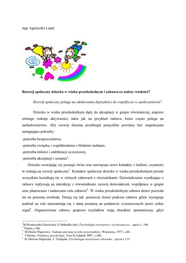 mgr Agnieszka Leper Rozwój społeczny dziecka w wieku