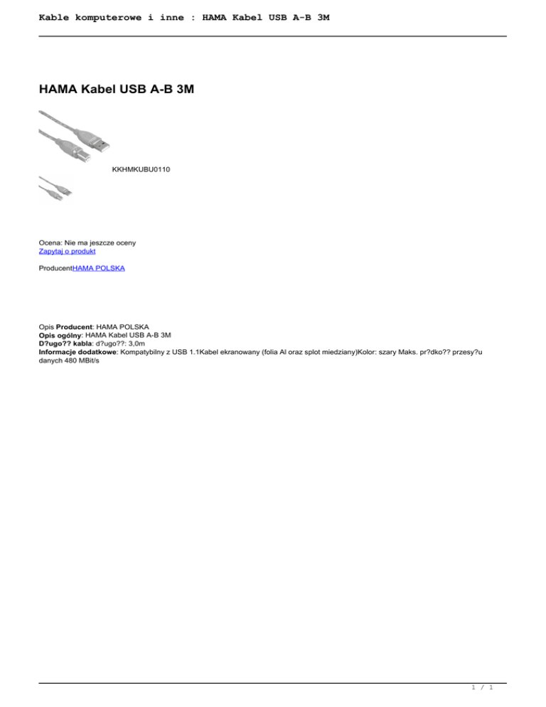 Kable komputerowe i inne : HAMA Kabel USB A-B 3M HAMA Kabel USB A-B 3M KKHMKUBU0110 Ocena: Nie ma jeszcze oceny Zapytaj o produkt ProducentHAMA POLSKA Opis Producent: HAMA POLSKA Opis ogólny: HAMA Kabel USB A-B 3M D?ugo?? kabla: d?ugo??: 3,0m Informacje dodatkowe: Kompatybilny z USB 1.1Kabel ekranowany (folia Al oraz splot miedziany)Kolor: szary Maks. pr?dko?? przesy?u danych 480 MBit/s 1 / 1 Powered by TCPDF (www.tcpdf.org)