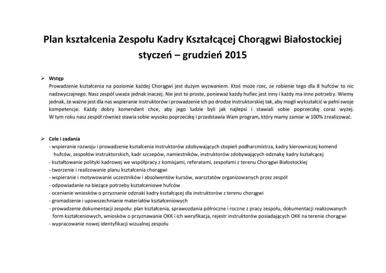 Plan kształcenia Zespołu Kadry Kształcącej Chorągwi Białostockiej