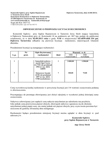 Pobierz załącznik - Komornik Dąbrowa Tarnowska