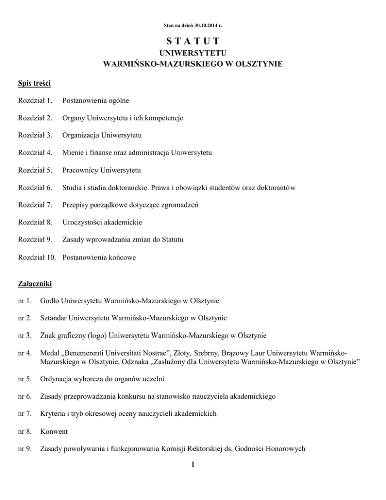 UJEDNOLICONA WERSJA STATUTU UWM w OLSZTYNIE