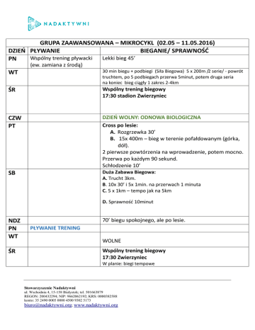 GRUPA ZAAWANSOWANA – MIKROCYKL (12.05 – 15.05.2016)