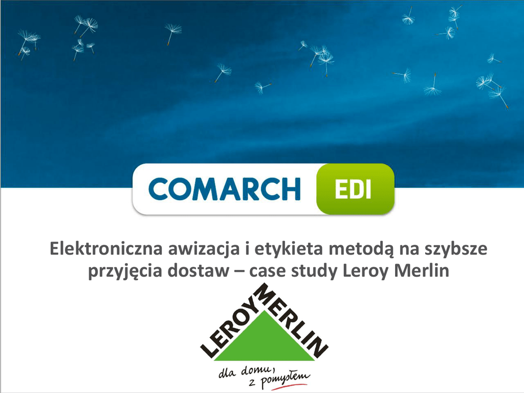 Elektroniczna awizacja i etykieta metodą na szybsze przyjęcia dostaw – case study Leroy Merlin Insert presentation title Elektroniczna awizacja z etykietą logistyczną Optymalizacja przyjęcia towarów Śledzenie przepływu dóbr (Traceability) Szybszy przepływ informacji Wdrożenie DESADV (EDI) Poprawna etykieta logistyczna Proste w użyciu jedno narzędzie dla dostawców FORUM WSPÓŁPRACY 2012 / 30.05.2012 Strona 2 Insert presentation title Kluczowy poprawny numer SSCC oraz powiązanie etykiety logistycznej z DESADV FORUM WSPÓŁPRACY 2012 / 30.05.2012 Strona 3 Insert presentation title Awizacja wraz z etykietą logistyczną Kompletacja Etykiety SSCC SIEĆ HANDLOWA (KANAŁ NOWOCZESNY) Awizacja (+ dodatkowe ) FAKTURA FORUM WSPÓŁPRACY 2012 / 30.05.2012 Strona 4 Insert presentation title Kompleksowa wsparcie w łańcuchu dostaw Procesy realizowane elektronicznie: • Zamawianie • Awizacja (z etykietą) • Fakturowanie (z archiwizacją) Dokumenty powiązane ze sobą Oszczędność per dokument ORDER EUR 16,00 DESADV EUR 14,00 INVOICE EUR 9,00 FORUM WSPÓŁPRACY 2012 / 30.05.2012 Źródło: GS1 Strona 5 Insert presentation title Etykieta logistyczna – fakty Skrócenie czasu przyjęcia dostawy z zewnątrz z wykorzystaniem etykiety wraz z elektroniczną awizacją skraca się do 33% czasu przyjęcia realizowanego tradycyjnie (Źródło: GS1) W krajach skandynawskich 90% wszystkich etykiet na paletach to etykiety zgodne z GS1 (Źródło: GS1) FORUM WSPÓŁPRACY 2012 / 30.05.2012 Przykłady użycia etykiet logistycznych z DESADV w Europie: • Carrefour Belgium • Remia Netherlands • Casino France • Laurus Netherlands • Sligro Food Netherlands 4% uczestników systemu GS1 w Polsce stosuje standardową etykietę logistyczną (Źródło: GS1) Strona 6 Insert presentation title Leroy Merlin – o firmie Data założenia: 1923 r. we Francji Pozycja Groupe ADEO: 2-gi w Europie i 4-ty na świecie dystrybutor w branży DIY Rozpoczęcie działalności w PL: 1994 r. Liczba sklepów: 43 sklepy Powierzchnia sklepów: 6 000 – 18 000 m2 80% towarów oferowanych w sklepach Leroy Merlin pochodzi od polskich producentów i dystrybutorów Liczba dostawców: ok. 700 FORUM WSPÓŁPRACY 2012 / 30.05.2012 Strona 7 Insert presentation title Leroy Merlin – logistyka Centrum Logistyczne w Strykowie: Od 01.01.2009 Powierzchnia 56 000 m2 Wysokość 12 m i 68 doków rozładunkowo-załadunkowych Prowadzi dystrybucję do wszystkich sklepów Leroy Merlin 7 000 indeksów asortymentowych o różnych gabarytach Współpraca z firmą Spedimex w obsłudze centrum FORUM WSPÓŁPRACY 2012 / 30.05.2012 Strona 8 Insert presentation title Leroy Merlin – zakres projektu Dostawy typu cross-docking przez Centrum Logistyczne. SKLEP LEROY MERLIN DOSTAWCA 1. PRZYJMUJE ZAMÓWIENIE 2. PAKUJE PRODUKTY W OPAKOWANIA LOGISTYCZNE 3. NAKLEJA ETYKIETĘ LOGISTYCZNĄ 4. WYSYŁA DESADV W KTÓRYM ŁĄCZY ILOŚCI PRODUKTÓW Z KAŻDEGO OPAKOWANIA Z KONKRETNĄ ETYKIETĄ LOGISTYCZNĄ 5. REALIZUJE DOSTAWĘ FORUM WSPÓŁPRACY 2012 / 30.05.2012 1. WYSYŁA ZAMÓWIENIE 1. SKANUJE PRZYJĘTE OPAKOWANIA 2. WERYFIKUJE ZGODNOŚĆ OPAKOWAŃ Z DESADV 3. REALIZUJE DOSTAWĘ DO SKLEPU 2. SKANUJE PRZYJĘTE OPAKOWANIA 3. WERYFIKUJE ZGODNOŚĆ OPAKOWAŃ Z DESADV 4. LICZY TOWAR Strona 9 Insert presentation title Leroy Merlin – cele projektu 1. POPRAWA PRODUKTYWNOŚCI OPERACJI 2. OGRANICZENIE ‘ŚLADU EKOLOGICZNEGO’ 3. SZYBKI ZWROT Z INWESTYCJI FORUM WSPÓŁPRACY 2012 / 30.05.2012 Strona 10 Insert presentation title Leroy Merlin – korzyści z projektu POPRAWA PRODUKTYWNOŚCI OPERACJI FORUM WSPÓŁPRACY 2012 / 30.05.2012 • Skrócenie czasu pierwszej kontroli dostawy o 10 – 25 min • Ograniczenie pracy administracyjnej o 15 – 35 min / dostawa • Szybszy przesył danych o dostawie (DESADV) • Szybsza identyfikacja rozbieżności • Łatwiejsze do odczytania etykiety • Możliwość przyjęcia / wysyłki partii zamówienia Strona 11 Insert presentation title Leroy Merlin – korzyści z projektu OGRANICZENIE ‘ŚLADU EKOLOGICZNEGO’ • Eliminacja wydruku papierowych dokumentów WZ - ponad 1 tona oszczędności papieru w pierwszym roku projektu SZYBKI ZWROT Z INWESTYCJI • Dostawcy korzystający z EDI dostosowanie systemów we własnym zakresie • Dostawcy korzystający z WEB-EDI (Comarch EDI) – koszty rozszerzenia aplikacji pokryte przez Leroy Merlin • ROI : 4 - 6 miesięcy FORUM WSPÓŁPRACY 2012 / 30.05.2012 Strona 12 Insert presentation title Leroy Merlin – wdrożenie Rozszerzenie funkcjonalności Rozszerzenie Comarch EDI funkcjonalności Web używanej Comarch EDI w komunikacji Web EDI Szybkie ii proste proste Szybkie wyszukiwanie wyszukiwanie Szybkie i proste Zamówień crossZamówień wyszukiwanie dockingowych crossZamówień dockingowych crossdockingowych Zaczytywanie Tworzenie danych z DESADV na otrzymanych podstawie Zamówień danych z podczas Zamówień tworzenia DESADV Intuicyjne Intuicyjne ‘pakowanie‘ Wybór typu ‘pakowanie‘ zamówionych opakowań tylko zamówionych towarówdodo używanych towarów zdefiniowanych przez Leroy zdefiniowanych opakowań Merlin (np. opakowań paleta, paczka) Automatyczne (ze wskazanej Automatyczne puli) lub ręczne (ze wskazanej generowanie puli) lub ręczne numeru SSCC generowanie numeru SSCC Zawężenie Zawężenie Intuicyjne wyboru typu wyboru typu ‘pakowanie‘ opakowań opakowań do do zamówionych wykorzystywan wykorzystywan towarów do ych przez ych przez Leroy Leroy zdefiniowanych Merlin Merlin (np. (np. opakowań paleta, paczka) paleta, paczka) FORUM WSPÓŁPRACY 2012 / 30.05.2012 Weryfikacja danych wpisywanych przez Dostawców Wydruk etykiety Wydruk logistycznej etykiety zgodny z logistycznej szablonem zgodny z szablonem Strona 13 Insert presentation title Logowanie do aplikacji FORUM WSPÓŁPRACY 2012 / 30.05.2012 Strona 14 Insert presentation title Zapakowana dostawa FORUM WSPÓŁPRACY 2012 / 30.05.2012 Strona 15 Insert presentation title Wydruk etykiety FORUM WSPÓ