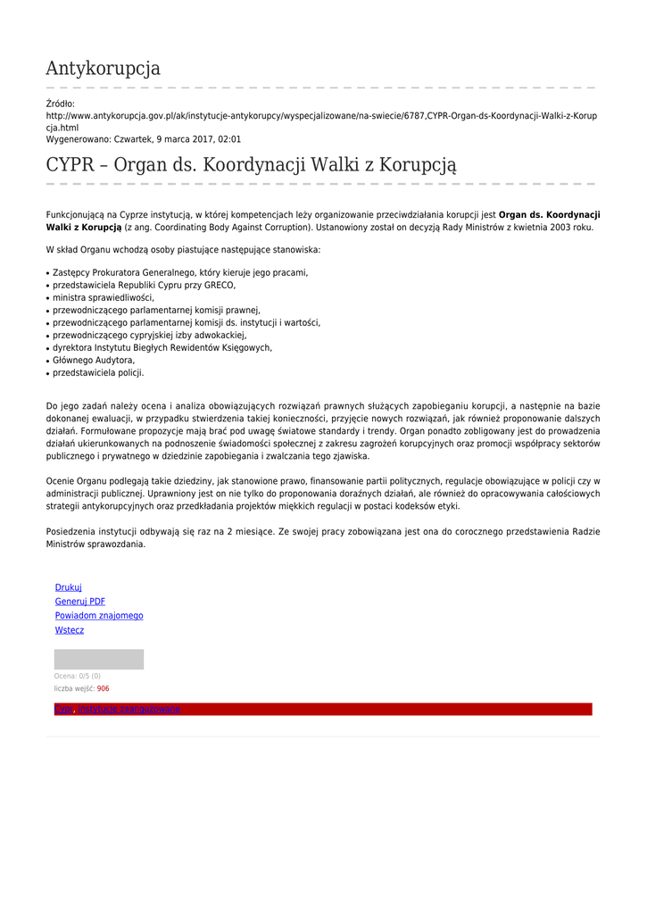 Antykorupcja CYPR – Organ ds. Koordynacji Walki z Korupcją